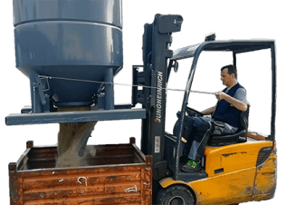 Konischer 1000-Liter-Behälter mit manueller Absperrklappe D.250 mm.